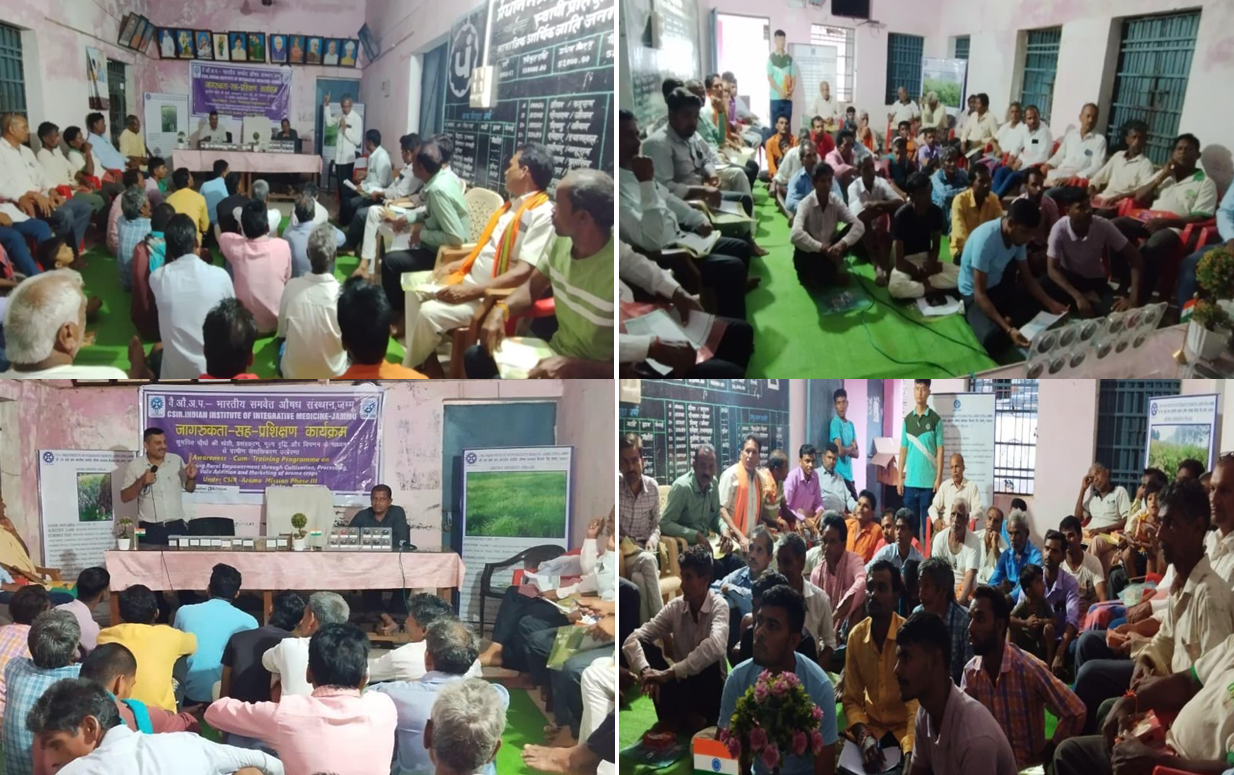 A two-day training program under the CSIR Aroma Mission Phase III was successfully organized on 17th–18th August 2025 at Village Binouri, Fingeshwar Block, Gariaband District, Chhattisgarh, with the objective of promoting the cultivation, processing, and value addition of aromatic crops for enhancing rural livelihoods and sustainable agricultural practices. More than 100 farmers actively participated in the program, showing keen interest in high-value aromatic crops suitable to the region’s agro-climatic conditions. The training included on-field demonstrations, practical sessions, and expert guidance on scientific cultivation, post-harvest management, and essential oil extraction, along with awareness on market linkages, value chain development, and success stories from progressive farmers, thereby motivating participants to adopt aromatic crops for income diversification and long-term sustainability.