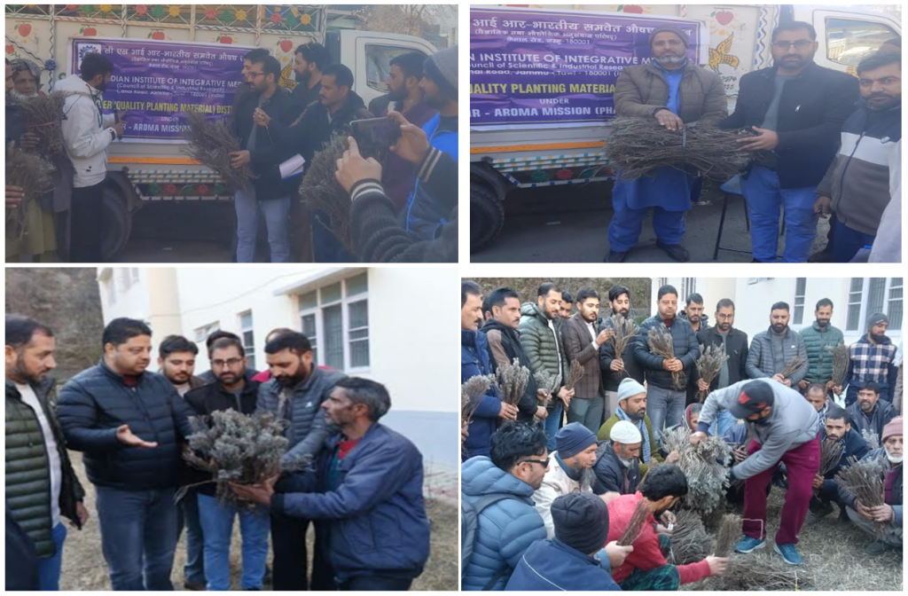 Under Aroma Mission Phase-III, CSIR–IIIM Jammu conducted a Lavender distribution programme on 08-01-2026 at Gandoh, Bhalessa. The event was held in the presence of SDM Gandoh, Sh. Arun Kumar Ji, along with other officials. During the programme, 23,800 QPM of lavender planting material was distributed free of cost among 16 beneficiary farmers. The initiative aims to promote lavender cultivation in the region and enhance farmers’ income through aromatic crop–based livelihood opportunities.
