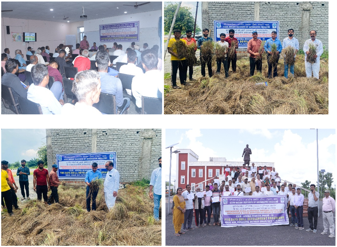 On August 18, 2025, the CSIR-Indian Institute of Integrative Medicine (IIIM), Jammu, successfully organized an Awareness and Quality Planting Material (QPM) Distribution Program at Motihari District in Bihar. This initiative was designed to educate and empower local farmers by introducing them to the potential of Lemongrass & Rosagrass cultivation as a high-value, sustainable, and income-generating crop. The program’s main objective was to provide farmers with in-depth knowledge of Lemongrass & Rosagrass farming techniques, its economic prospects, and access to high-quality planting material to encourage its widespread adoption in the region.