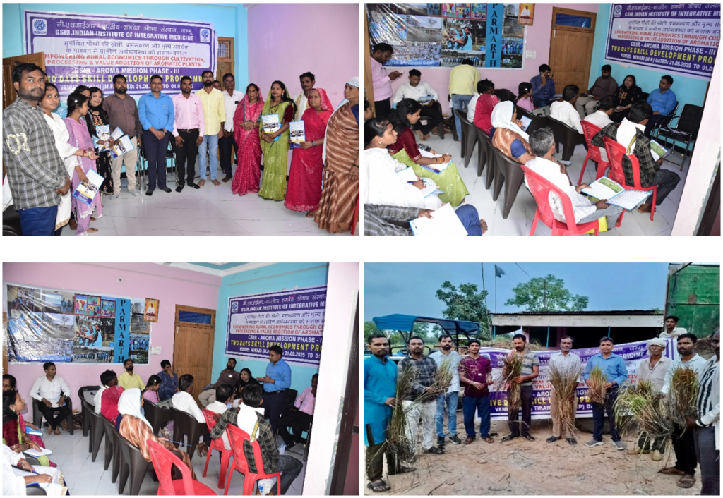 On September 5, 2025, the CSIR-Indian Institute of Integrative Medicine (IIIM), Jammu, organized an Awareness-cum-Quality Planting Material (QPM) Distribution Program in Niwari District, Madhya Pradesh. The initiative was designed to educate local farmers about the prospects of lemongrass and rosagrass cultivation, equipping them with the necessary knowledge and resources to adopt these high-value aromatic crops.