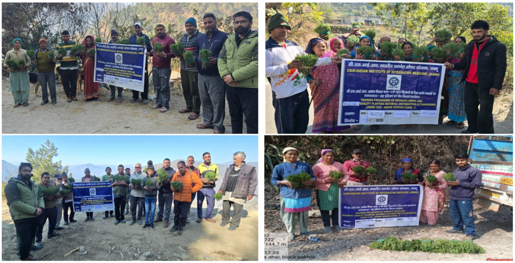 Under the Aroma Mission Phase III of CSIR–Indian Institute of Integrative Medicine, Jammu, a Rosemary Plant Distribution Program was successfully conducted from 14 February 2026 to 15 February 2026 in villages of Uttarakhand. The programme was organized to promote the cultivation of aromatic crops and enhance farmers’ income through the introduction of high-value medicinal and aromatic plants like rosemary.