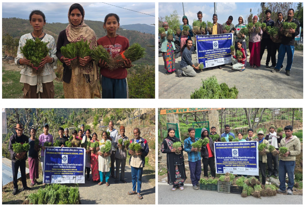 On 27–28 March 2026, under Aroma Mission Phase 3 of CSIR-IIIM Jammu, a successful distribution of Rosemary planting material was carried out across 7 villages in Uttarakhand, covering 5 villages in Block Dhouladevi (District Almora) and 2 villages in Blocks Dhari and Ramgarh (District Nainital), with the objective of promoting aromatic crop cultivation and strengthening farmers’ livelihoods.